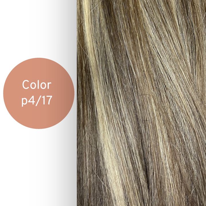 • Haarfarbe: Goldbraun mit sandblond gesträhnt (p4/17). Goldbraun Anteil 70% und sandblond Anteil 30%